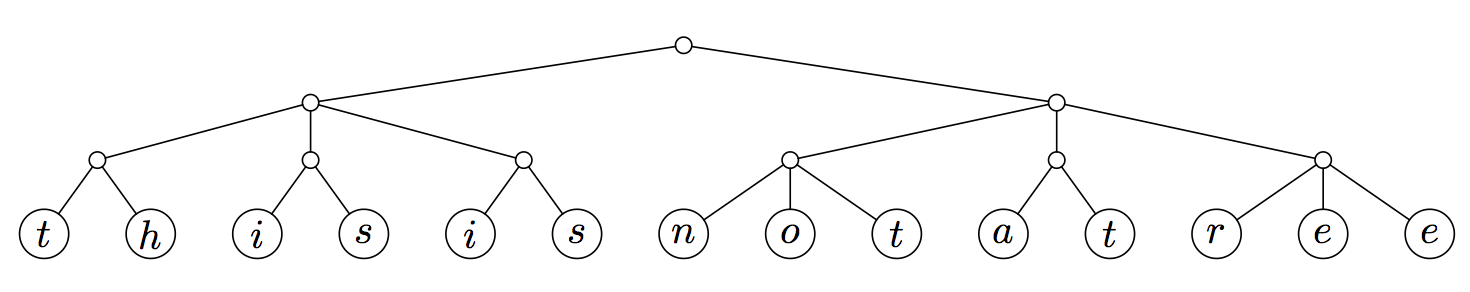 - 離根越近,節點指向的原始樹(在它是手指樹之前的樹)的子樹越深。這樣,沿着樹向下工作就是從葉子到樹的根,這與典型的樹數據結構相反。為了獲得這種的結構,我們必須確保原始樹具有統一的深度。在聲明節點對象時,必須通過子節點的類型進行參數化。深度為 \(1\) 及以上的脊椎上的節點指向樹,通過這種參數化,它們可以由嵌套節點表示。