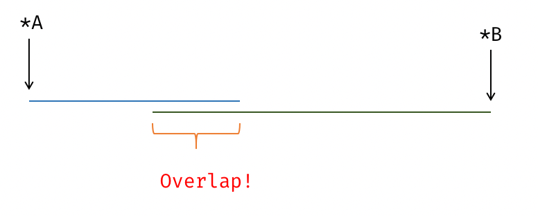 兩個任意指針對應的區域可能出現重疊 (overlap),此時需要特判是否可以使用向量代碼。下圖展示了一個指針重疊的例子: