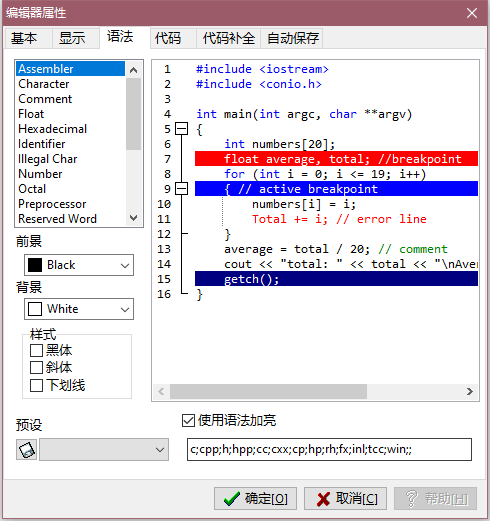 點擊工具 -> 編輯器選項,然後選擇 "語法" 選項卡,可以使用預設主題,也可以自行調整。