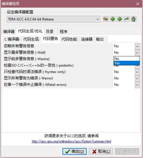 選擇 "代碼警告" 子選項卡中的 "顯示最多警告信息(-Wall)" 選項標籤。