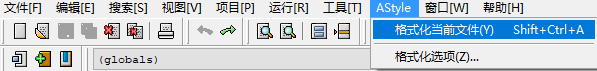 點擊 Astyle-> 格式化當前文件 或 按 Ctrl+Shift+A 進行代碼格式化。