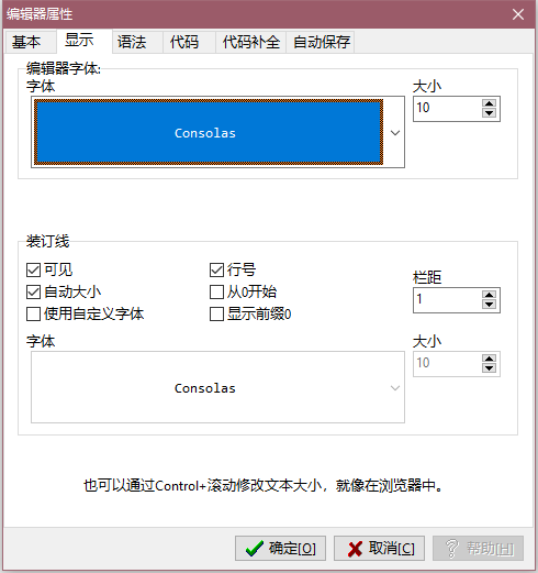 點擊工具 -> 編輯器選項,然後選擇 "顯示" 選項卡。