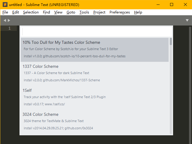 再次按下Ctrl+Shift+P輸入 Install 後回車(完整命令是 Package Contrl:Install Package),等待加載完成,接下來應該是這個界面: