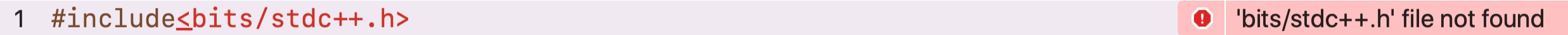 我們在源代碼第一行引入萬能頭文件,然而編譯過程中卻提示:'bits/stdc++.h' file not found。即該頭文件未找到。