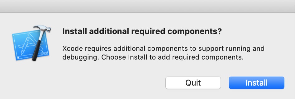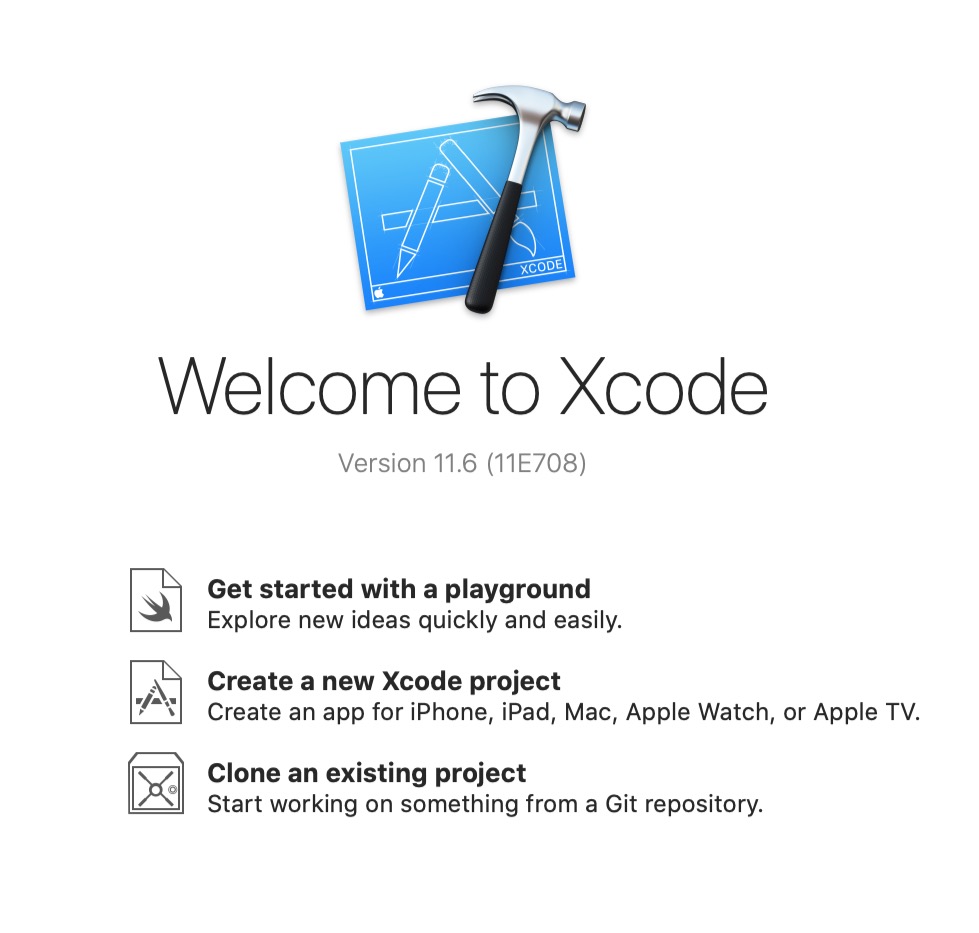 首次打開 Xcode 時,可能會遇到下列彈出窗口: