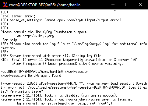 如果使用了 xfce4,可以在彈出的窗口中使用如下命令激活 xfce4: